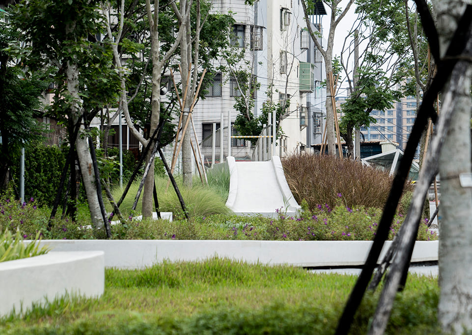 “大尺建築”意涵大尺度的思維見解,秉持「涵構主義」信念,傳遞建築不局限在室內空間與建築上,而是延伸到景觀、環境與人文,大尺向度對話城市。